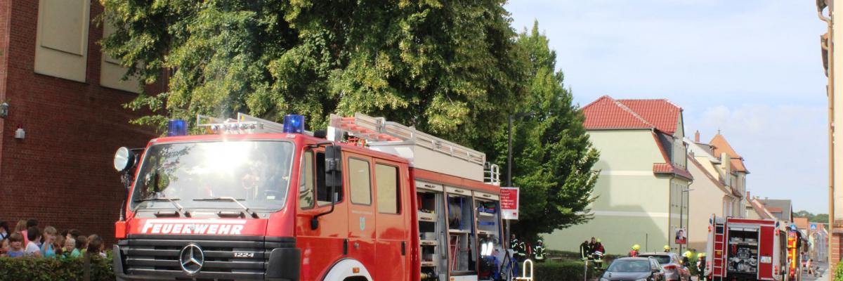 Karla Kolumna hätte ihre wahre Freude gehabt. Die Feuerwehr rast durch Rötha. Was ist passiert? Dicker Rauch qualmt aus dem Zimmer der Schulleiterin. Die Grundschüler erwarten die Feuerwehr schon auf dem Sammelplatz, nur drei Minuten, nachdem der Alarm auslöste.