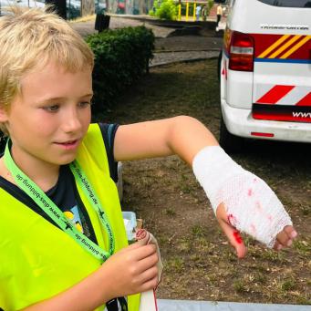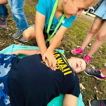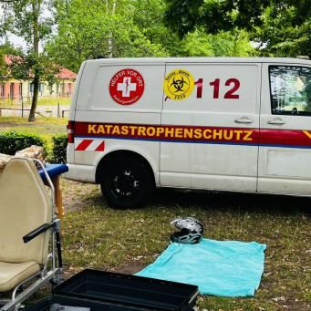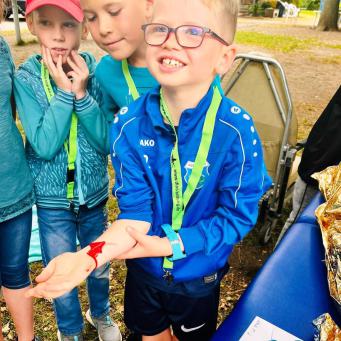 Ein weiteres Erlebnis war die Erste Hilfe-Station mit Krankenwagen. Hier mussten einige „Verletzte“ erstversorgt werden, es wurde die stabile Seitenlage geübt und ein Notruf wurde abgesetzt.