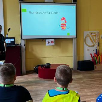 Bei einem interessanten Vortrag wurde den Kindern viel Wissenswertes zum Brandschutz nähergebracht. Außerdem spielten die Schülerinnen und Schüler Gefahrenzeichen-Memory und „Feuer, Wasser, Rauch“.
