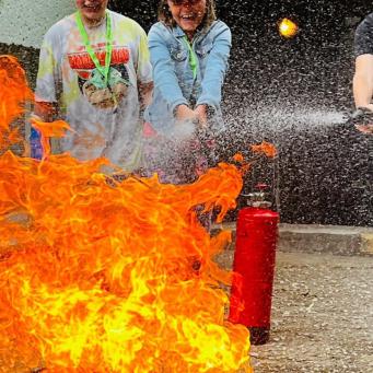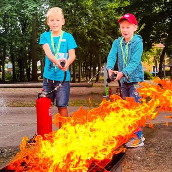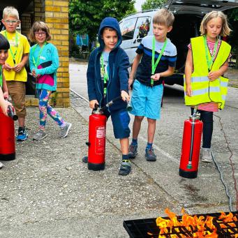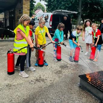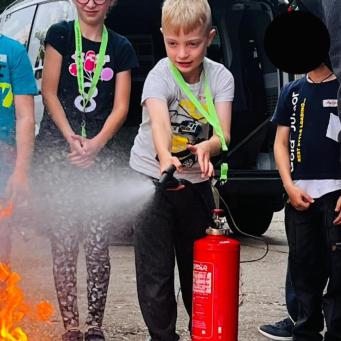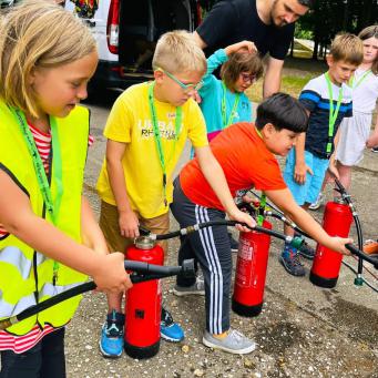 Der Höhepunkt des Tages war für viele sicher die gemeinsame Feuerlöschübung, bei der die Kinder selbst kleine Feuerwehrleute sein durften.