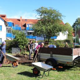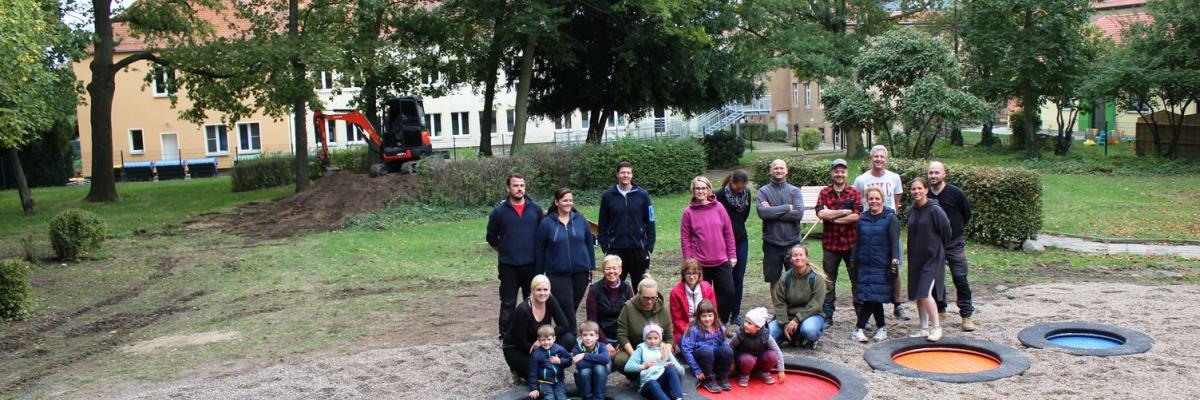 Danke an Förderverein, allen helfenden Eltern und Lehrern für den erfolgreichen Einbau des Bodentrampolins und dem Anlegen eines „Naschgartens“ in unserem Schulgarten.
