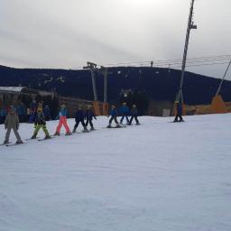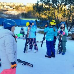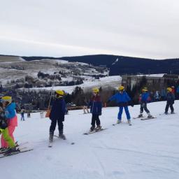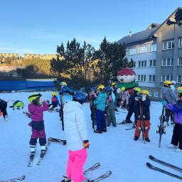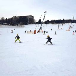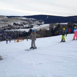 9 Uhr startete der Reisebus Richtung Hotel „Schwarzes Ross“ in Oberwiesenthal. Die Kinder bezogen nach einem reichhaltigen Mittag ihre 2-, 3- und 4-Bettzimmer mit eigenem Bad und Fernseher. Nachdem am frühen Nachmittag sämtliche Skiutensilien ausgeliehen wurden, ging es direkt für zwei Stunden auf die Piste. Auf dem Rückweg nutzten die Kinder die Gelegenheit, um sich mit etwas Taschengeld bei einem kleinen Einkauf für die Woche mit ein paar Naschereien auszustatten. Nach dem leckeren Abendessen knüpften einige bereits Kontakte zu Kindern der mitgerissen 91. Grundschule aus Leipzig. Nach der Bearbeitung eines besonderen Fragen- und Aufgabenbogens mit Vergabe von Zimmernamen u.ä., war 21.00 Uhr Nachtruhe.