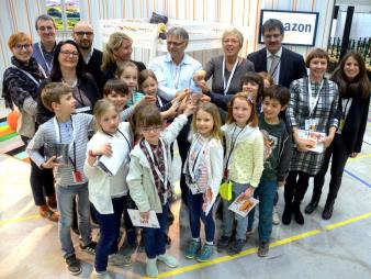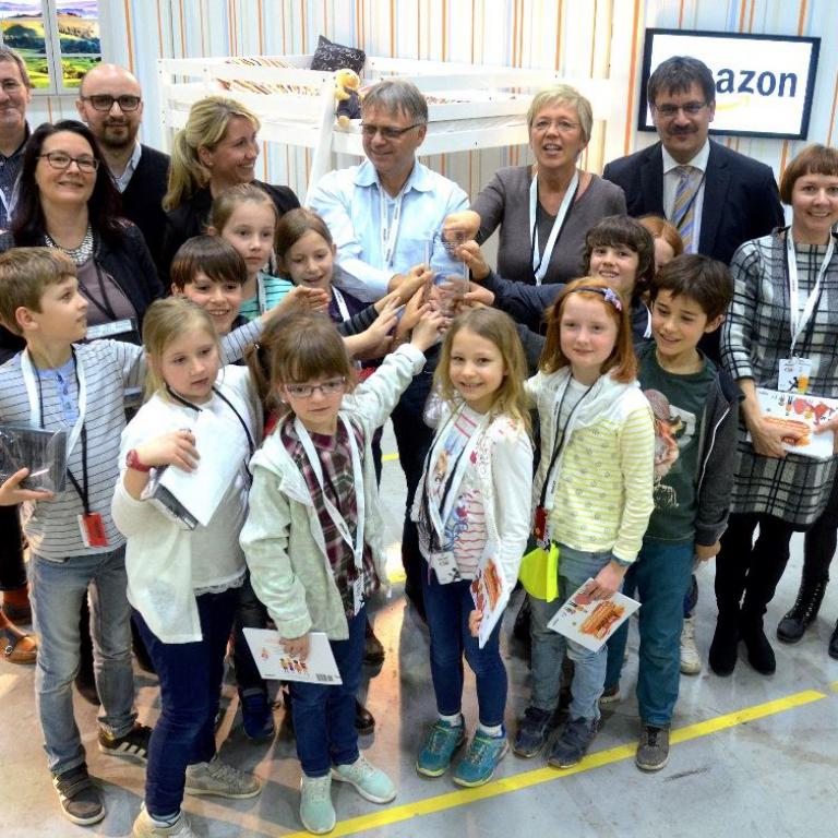 Außerdem konnten sich die Kinder direkt vor Ort einen Eindruck von den logistischen Prozessen machen und erleben, wie Bücher und andere Bestellungen zu den Amazon-Kunden kommen.