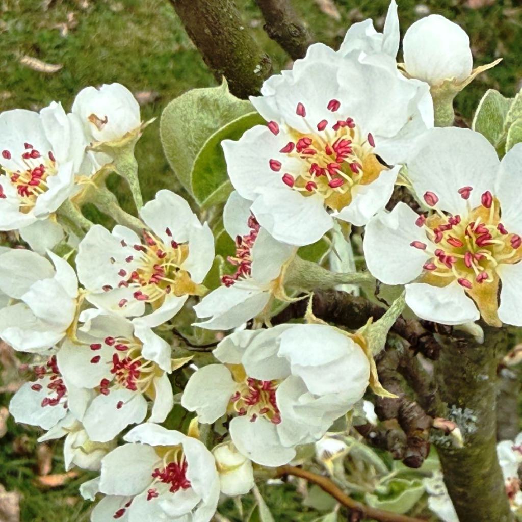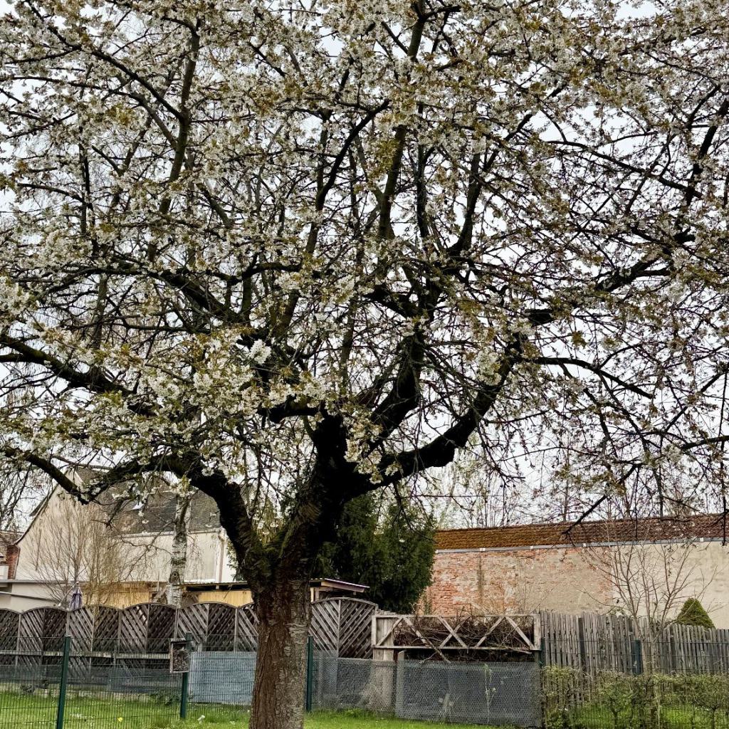 Auch in der übrigen Gartenfläche gibt es viel zu entdecken. Die Kirschbäume stehen in voller Blüte, und die kleinen Bäumchen, die die Viertklässler zum Abschluss ihrer Grundschulzeit gepflanzt haben, gedeihen prächtig. Zwischen den Beeten zeigen sich viele bunte Frühblüher, die den Frühling in unseren Garten bringen.